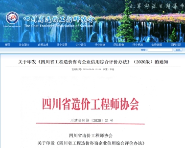 【綿陽正信公司·綜合部消息】根據(jù)“四川省造價工程師協(xié)會川建筑價師協(xié)【2020】31號”文件要求,工程造價咨詢企業(yè)應(yīng)建立信用承諾制度,定期按要求向四川省造價工程師協(xié)會提交信用承諾資料,協(xié)會負(fù)責(zé)組織開展全省造價咨詢企業(yè)的信用綜合評價工作,定期公布評價信息。在以往每年的信用評價檢查中,我公司信用綜合評價等級均為最高(AAA級)?,F(xiàn)我司工作人員正積極準(zhǔn)備相關(guān)資料,爭取在今年的信用評價中再創(chuàng)佳績。